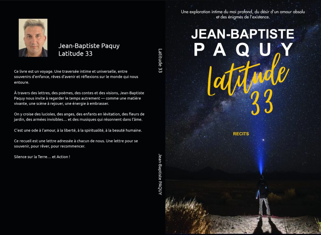 Pourtant, derrière les algorithmes, une autre vocation se dessine : celle d’écrivain. Jean-Baptiste nourrit depuis l’enfance une imagination foisonnante, tournée vers un public bien précis — les enfants. Son rêve : leur offrir des histoires qui font grandir, qui font rêver, comme les arts l’ont fait rêver lui-même. Des difficultés de santé rencontrées dans sa jeunesse l’amènent à poser des mots sur ses émotions, ses espoirs, ses mondes intérieurs. L’écriture devient alors un refuge, une boussole, une manière de transformer les épreuves en poésie. Aujourd’hui, Jean-Baptiste Paquy vit dans la métropole grenobloise avec sa famille. Il continue d’écrire, fidèle à son rêve d’enfant : celui de faire rêver les autres.Latitude 33 - Récits